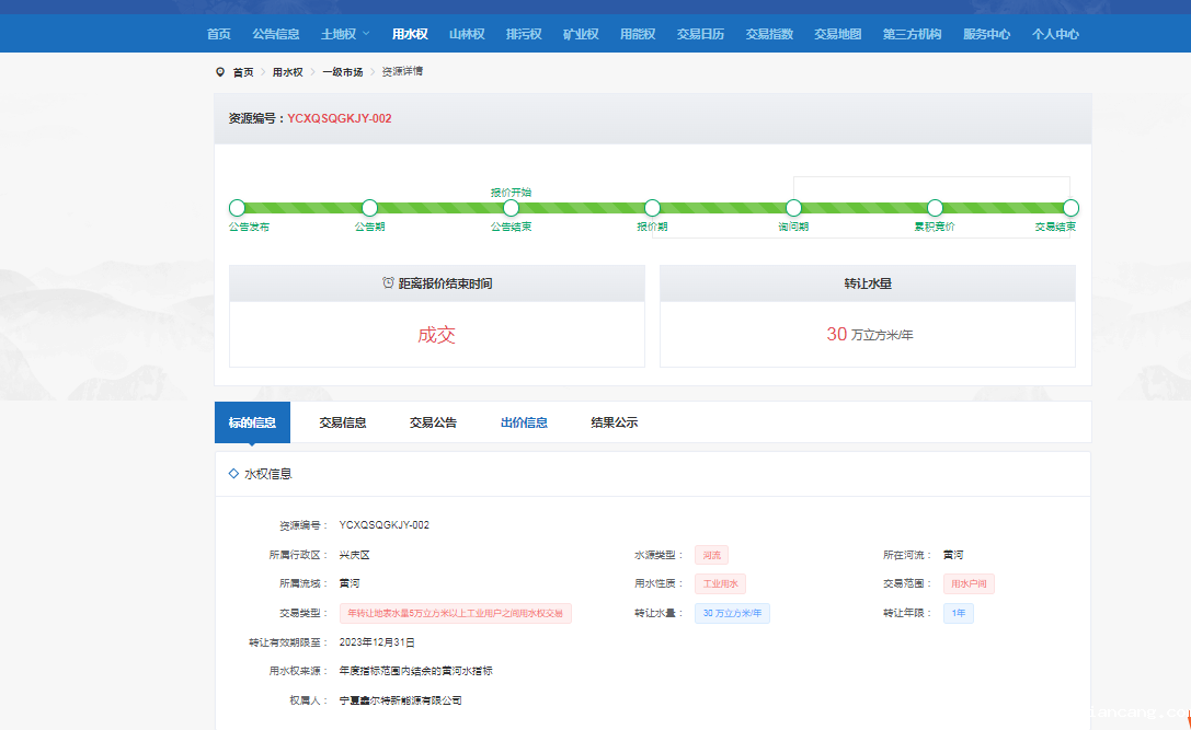 30万立方米!宁夏鑫尔特公司首笔用水权交易成功